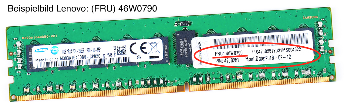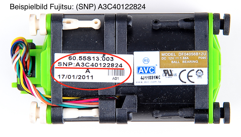 If you need a replacement part because your server is defective, it makes sense to replace the faulty part. Remove the defective part with the device turned off and first check it for an existing part number (PN) or replacement part number (SPN) and (SPS).